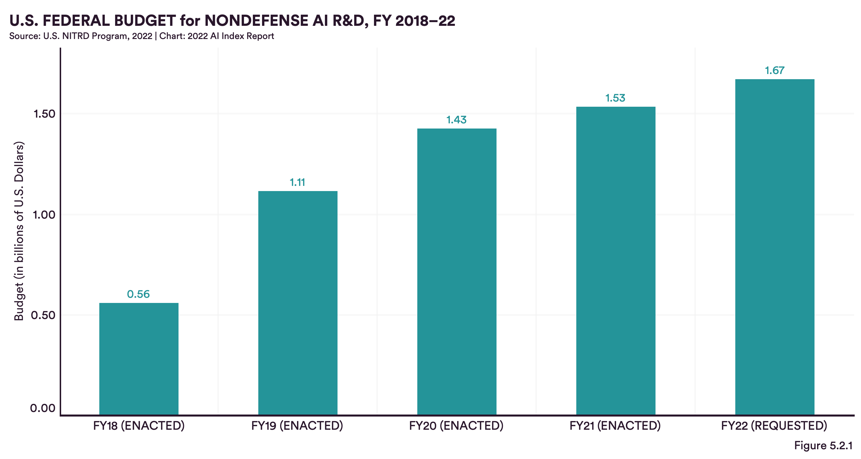 U.S. federal budget for Nondefense AI R&D, FY 2018-22