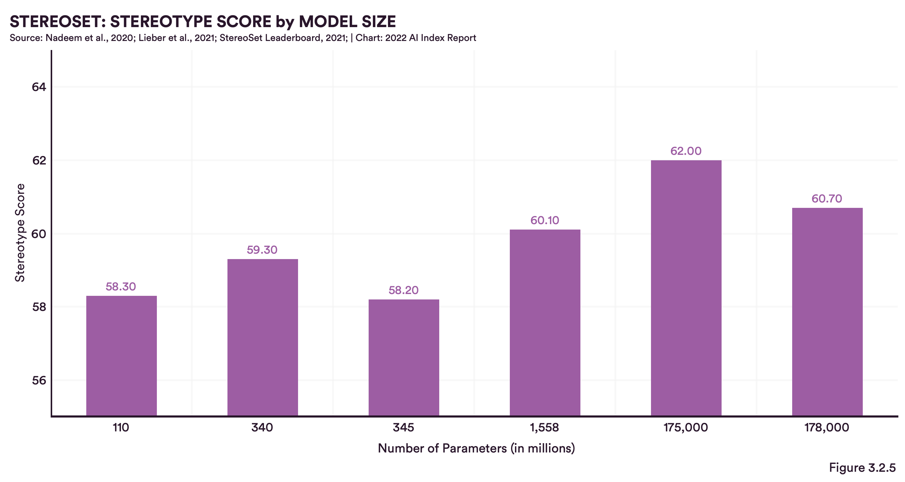 Stereoset: Stereotype score by model size
