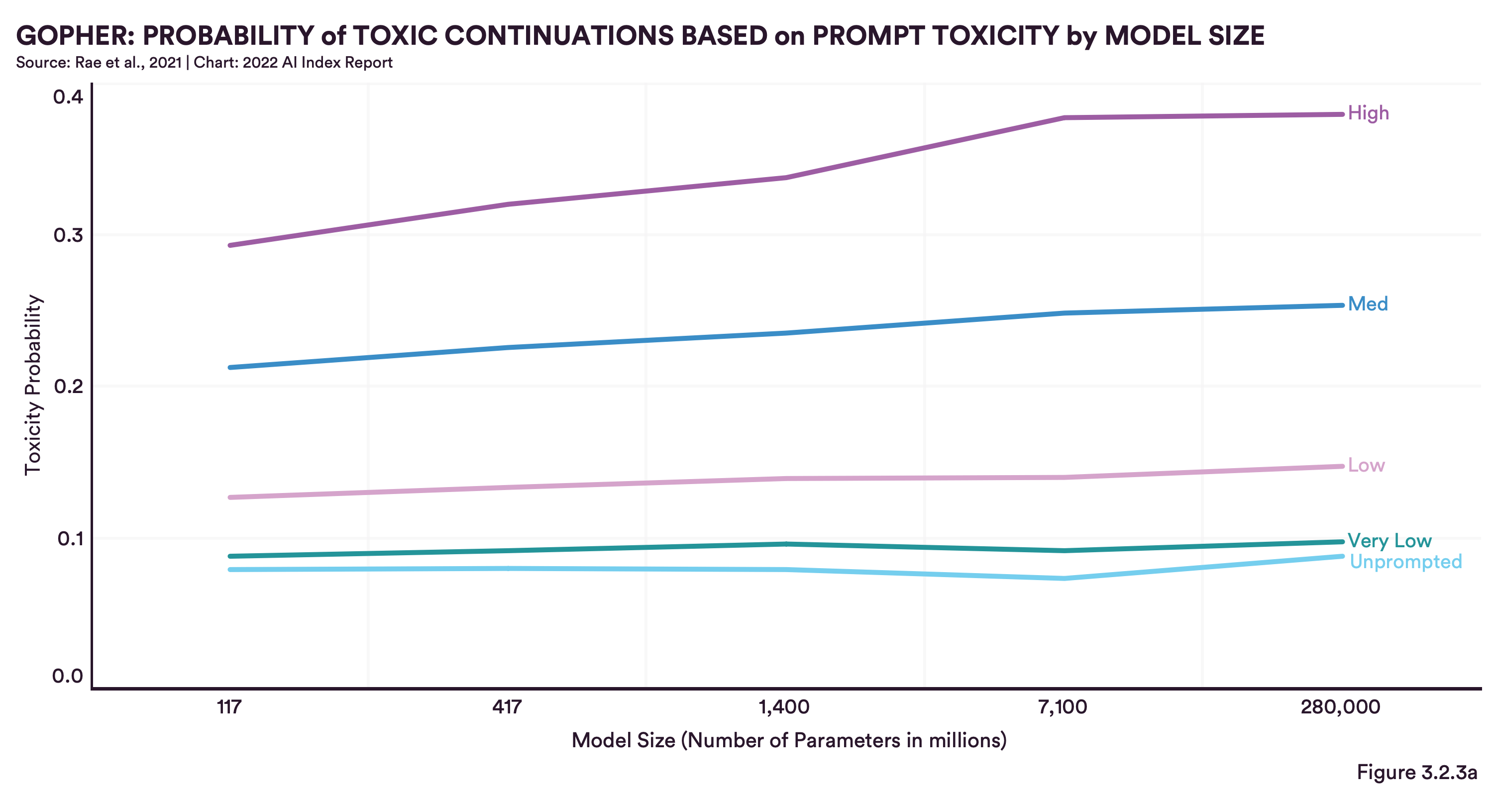 GOPHER: probability of toxic continuations based on prompt toxicity by model size