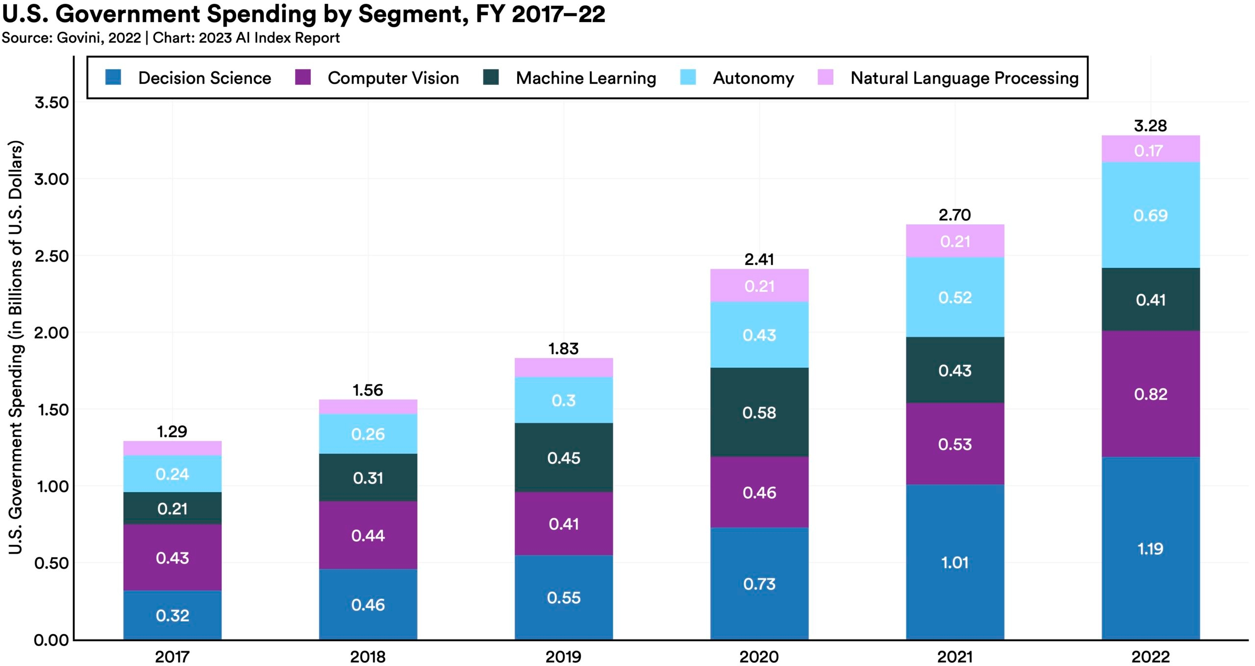 The U.S. government continues to increase spending on AI.