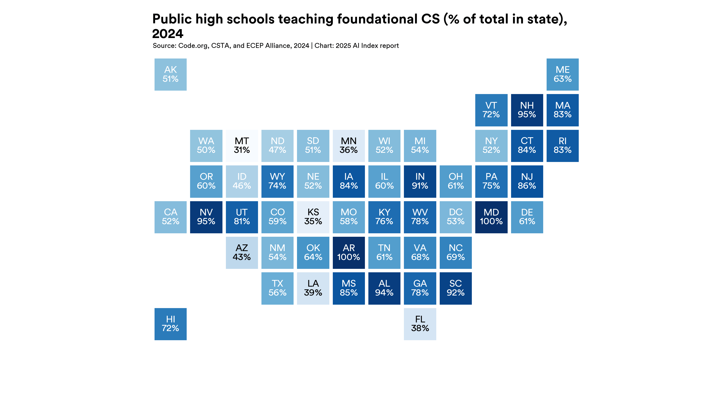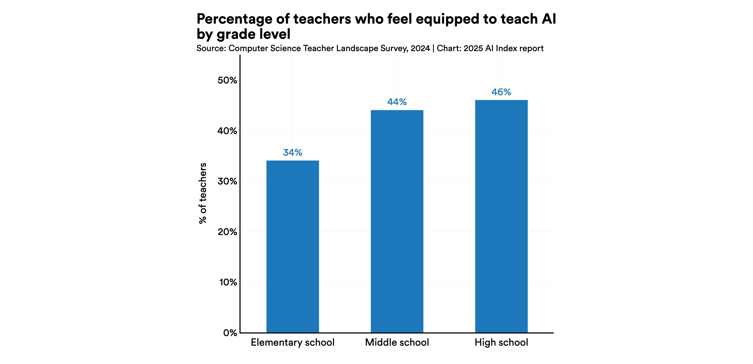 Despite 81% of CS teachers agreeing that using AI and learning about AI should be included in a foundational CS learning experience, less than half of high school CS teachers felt equipped to teach AI.