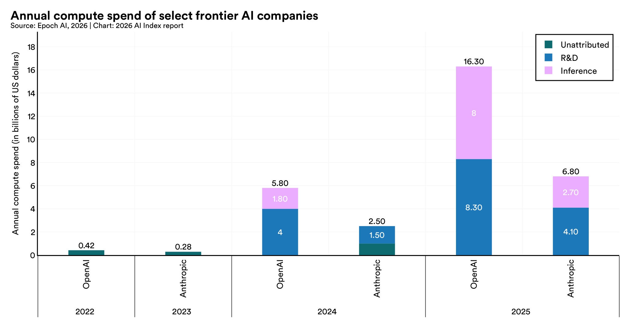 Leading frontier companies are reaching meaningful revenue scale in a short period of time, but compute spend has increased significantly year-over-year. Major cloud providers have accelerated capital expenditures, with Google reporting more than $150 billion in annual capex in 2025.