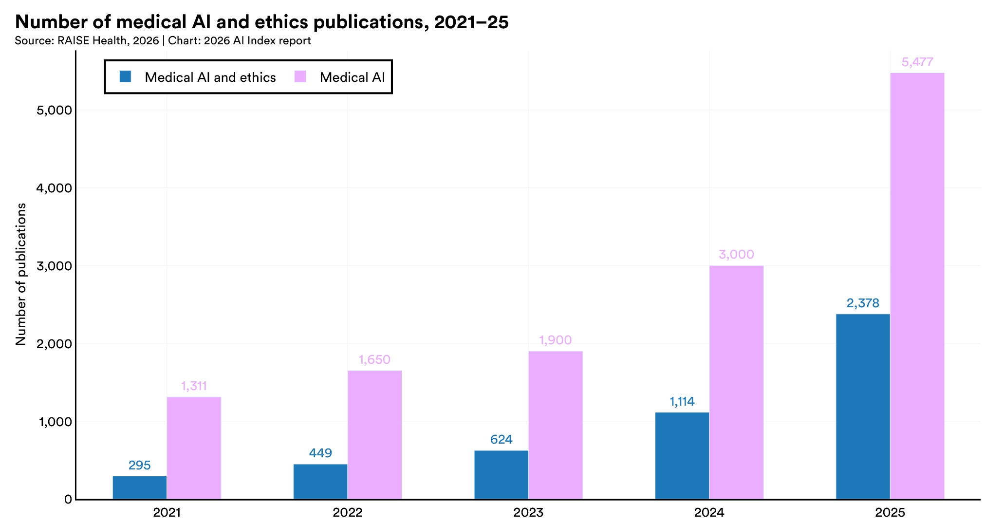 Governance dominates the discourse, while algorithm accountability, biosecurity, and global health equity remain underexplored.