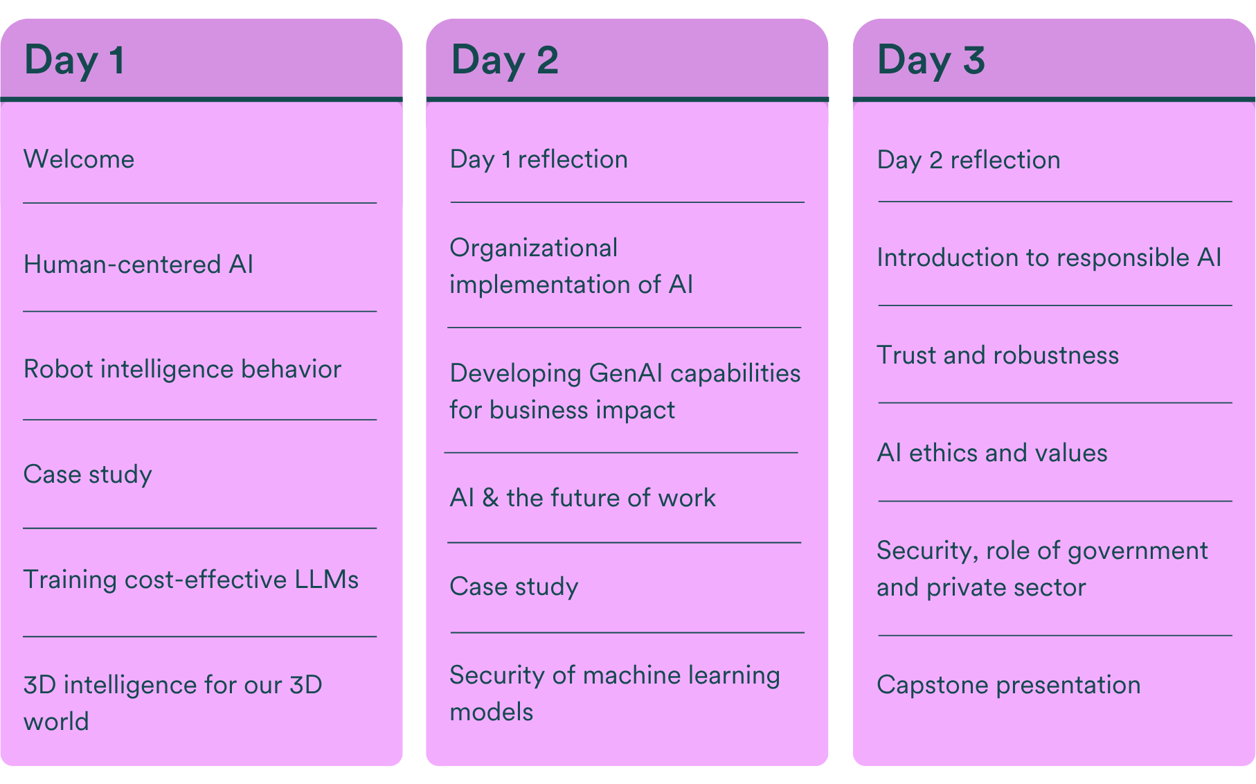 These programs are ideal for forward-thinking leaders across industries who recognize that AI is reshaping the future of work, decision-making, and innovation. Whether you're navigating digital transformation, shaping policy, or driving organizational growth, our custom education programs are designed to equip decision-makers in your organization with the knowledge and skills to lead confidently in the age of AI.