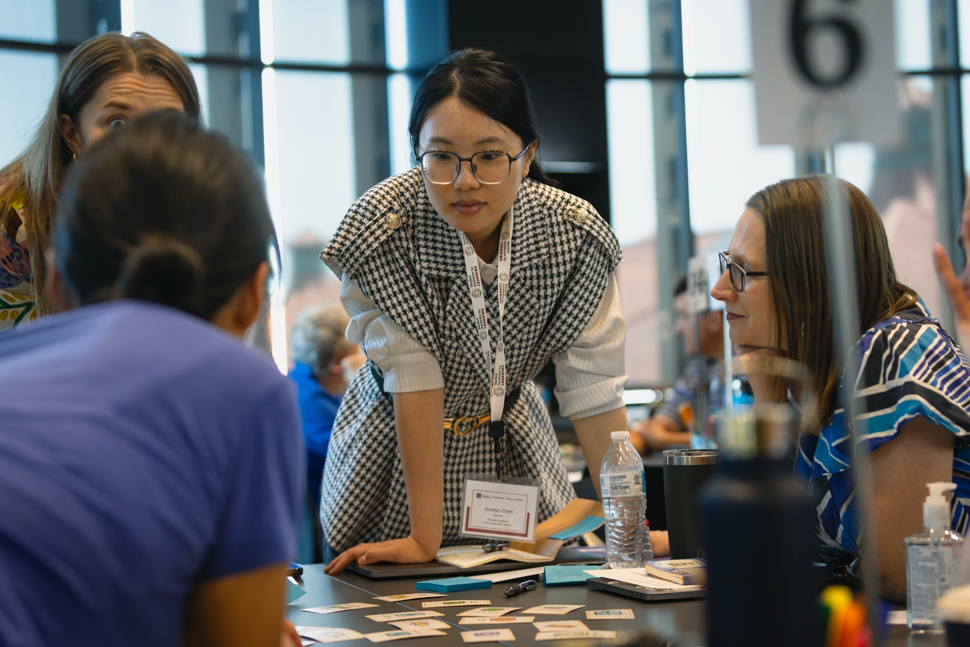 One important finding we observed is that, when provided time and structure to explore, critique, and design with AI tools in community with peers, teachers develop nuanced ways of evaluating AI – even without having received training in AI. Grounding the summit in both teachers’ own values and concrete problems of practice helped teachers develop specific evaluation criteria tied to realistic classroom scenarios. We used purposeful tactics to organize teachers into groups with peers who held different experiences with and attitudes toward AI than they did, exposing them to diverse perspectives they may not have otherwise considered. Juxtaposing different perspectives informed thoughtful, balanced evaluation criteria, such as, “Teaching students to use AI tools as a resource for curiosity and creativity, not for dependence.” One teacher reflected, “There is so much more to learn outside of where I’m from and it is encouraging to learn from other people from all over.”