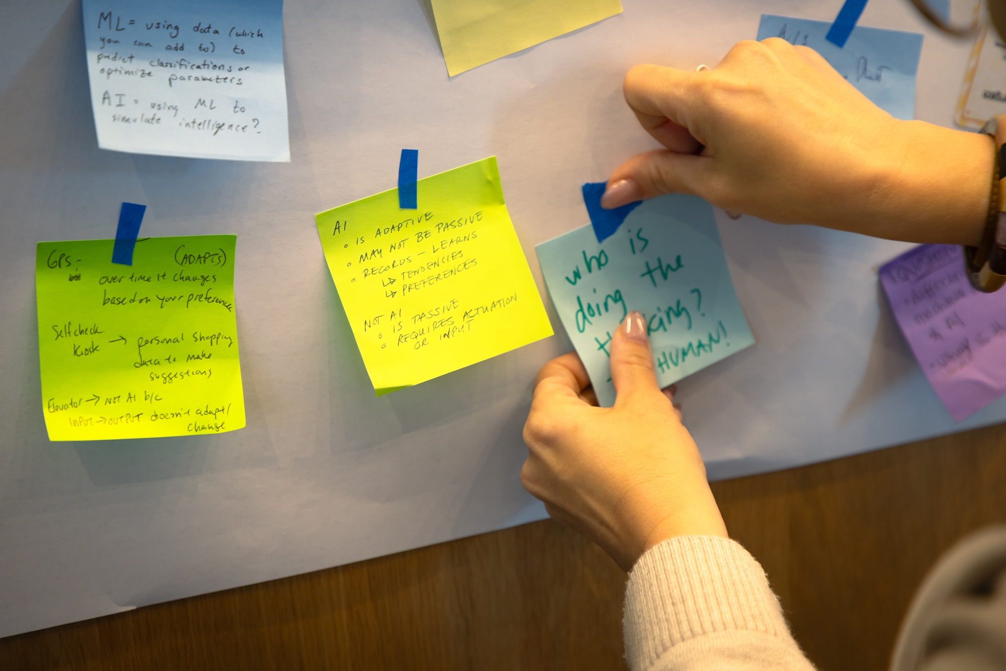 Over the course of the summit, several of our facilitators observed that teachers – even those who arrived with strong positive or strong negative feelings about AI – adopted a stance toward AI that we characterized as “critical but curious.” They moved easily between optimism and pessimism about AI, often in the same sentence. One teacher wrote in her summit reflection, “I’m mostly skeptical about using AI as a teacher for lesson planning, but I’m really excited … it could be used to analyze classroom talk, give students feedback … and help teachers foster a greater sense of community.” Another summed it up well: “We need more people dreaming and creating positive tools to outweigh those that will create tools that will cause challenges to education and our society as a whole.”