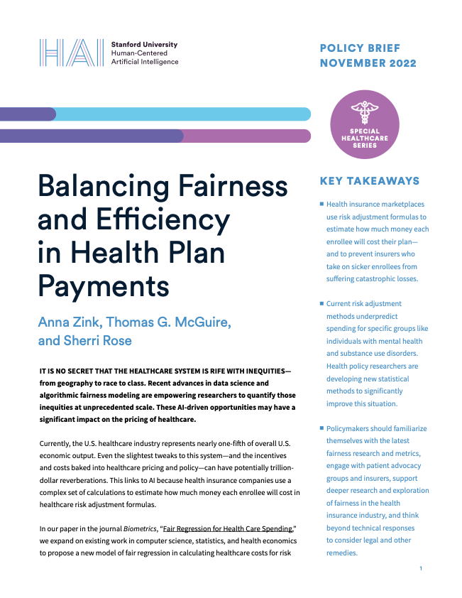 Two additional publications, “Improving the Performance of Risk Adjustment Systems” in the American Journal of Health Economics and “Identifying Undercompensated Groups Defined by Multiple Attributes in Risk Adjustment” in BMJ Health & Care Informatics, build on this work. In the former, we examine how reinsurance (which protects insurance firms from high-dollar claims), machine learning methods, and other design elements impact the risk adjustment systems used to pay health plans. In the latter, we present a new way of identifying marginalized groups across multiple characteristics, focused especially on people with chronic conditions.