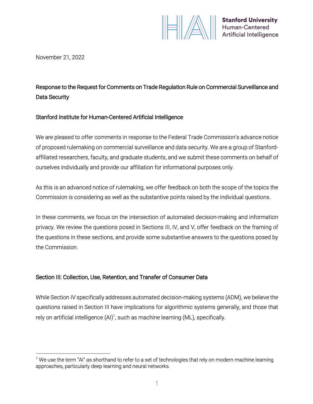Stanford scholars respond to a federal RFC on commercial surveillance and data security, focusing on the intersection of automated decision-making and information privacy.