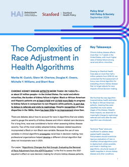 This policy brief explores the complexities of accounting for race in clinical algorithms for evaluating kidney disease and the implications for tackling deep-seated health inequities.