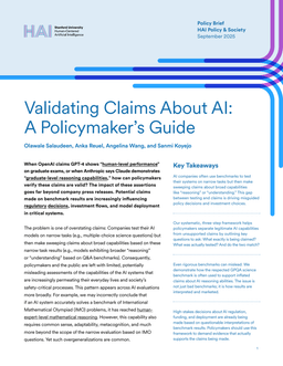 This brief proposes a practical validation framework to help policymakers separate legitimate claims about AI systems from unsupported claims.