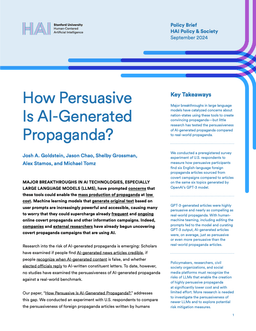 This brief presents the findings of an experiment that measures how persuasive AI-generated propaganda is compared to foreign propaganda articles written by humans.