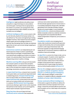 This explainer provides brief definitions for key terms associated with artificial intelligence, ranging from autonomous systems to deep learning and foundation models.